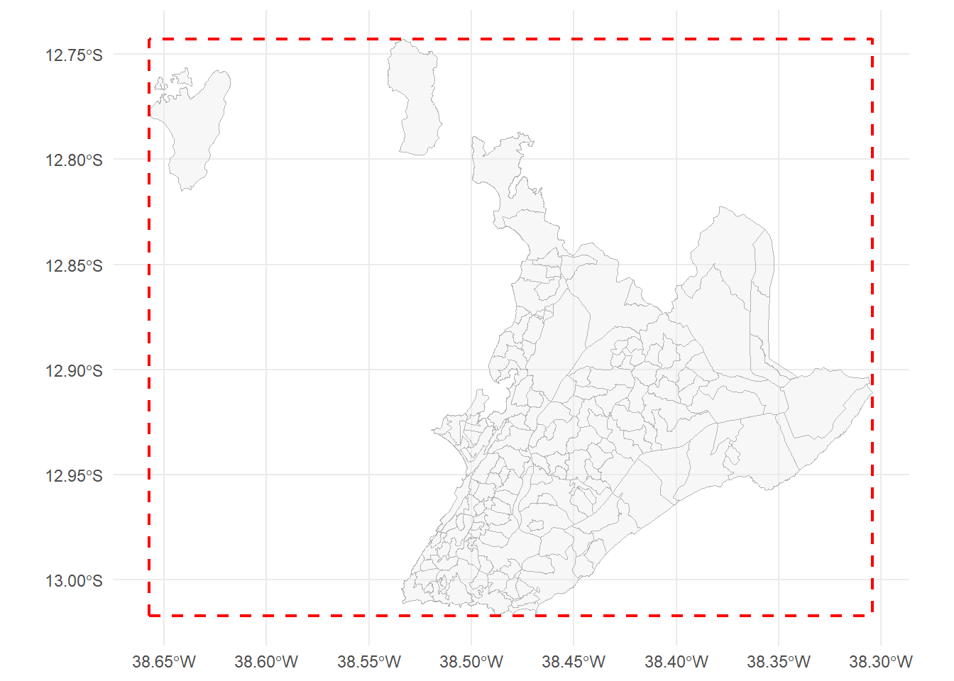 st_as_sfc("POLYGON ((-38.52 -12.95, -38.47 -12.95, -38.47 -13.01, -38.52 -12.95))")Geometry set for 1 feature