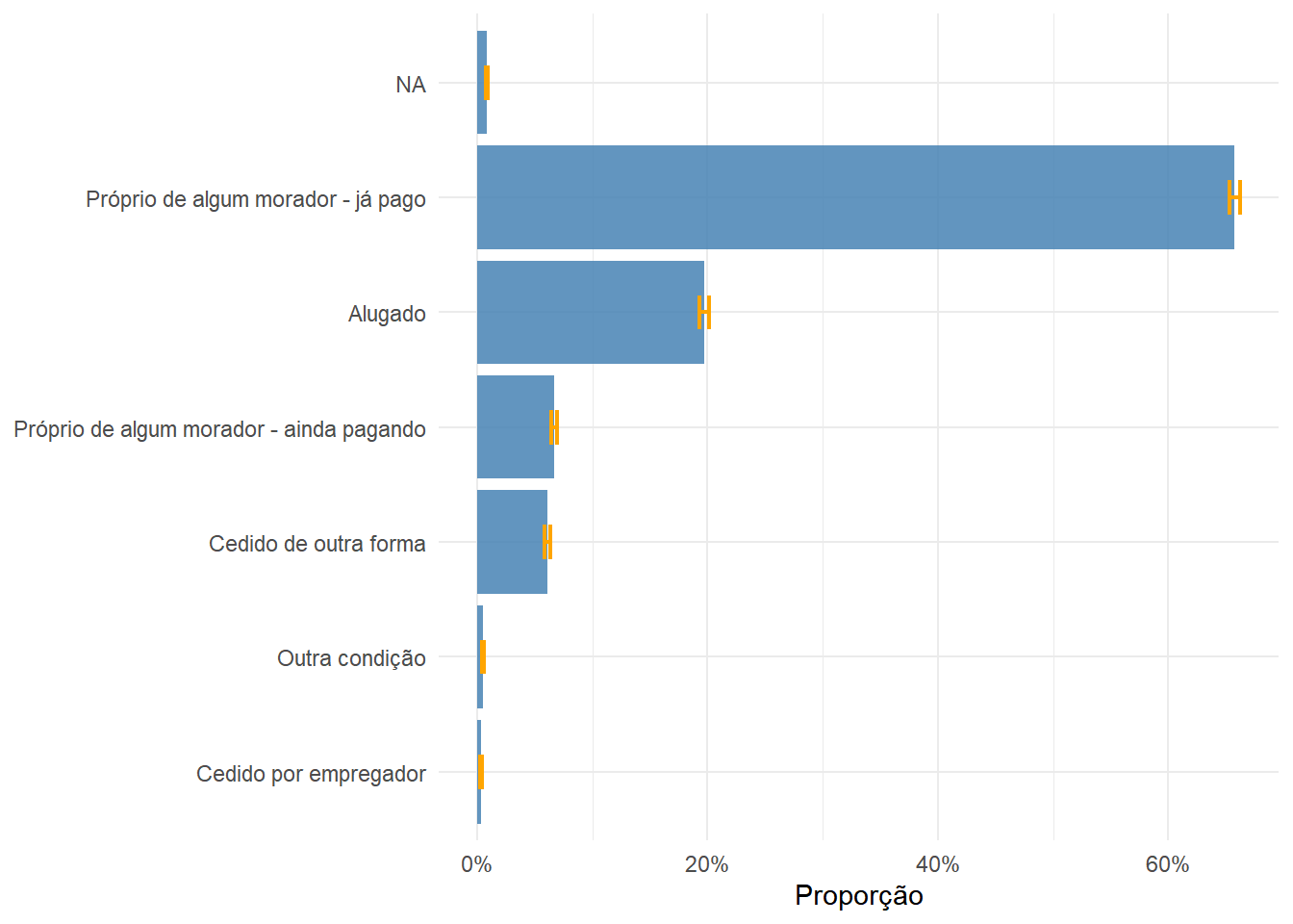 Nos exemplos das próximas seções, usaremos exclusivamente o srvyr. Leitores que preferirem o survey podem consultar Lumley (2011) e Zimmer et al. (2024) para a sintaxe equivalente. Eles se baseiam no tutorial de Silva et al. (2017), apresentado no 6º Seminário de Metodologia do IBGE em 2017. Para quem deseja aprofundar em fundamentos metodológicos de amostragem complexa, com foco especial no Censo Demográfico brasileiro, o livro de Pessoa & Silva (1998) é uma referência clássica na área.