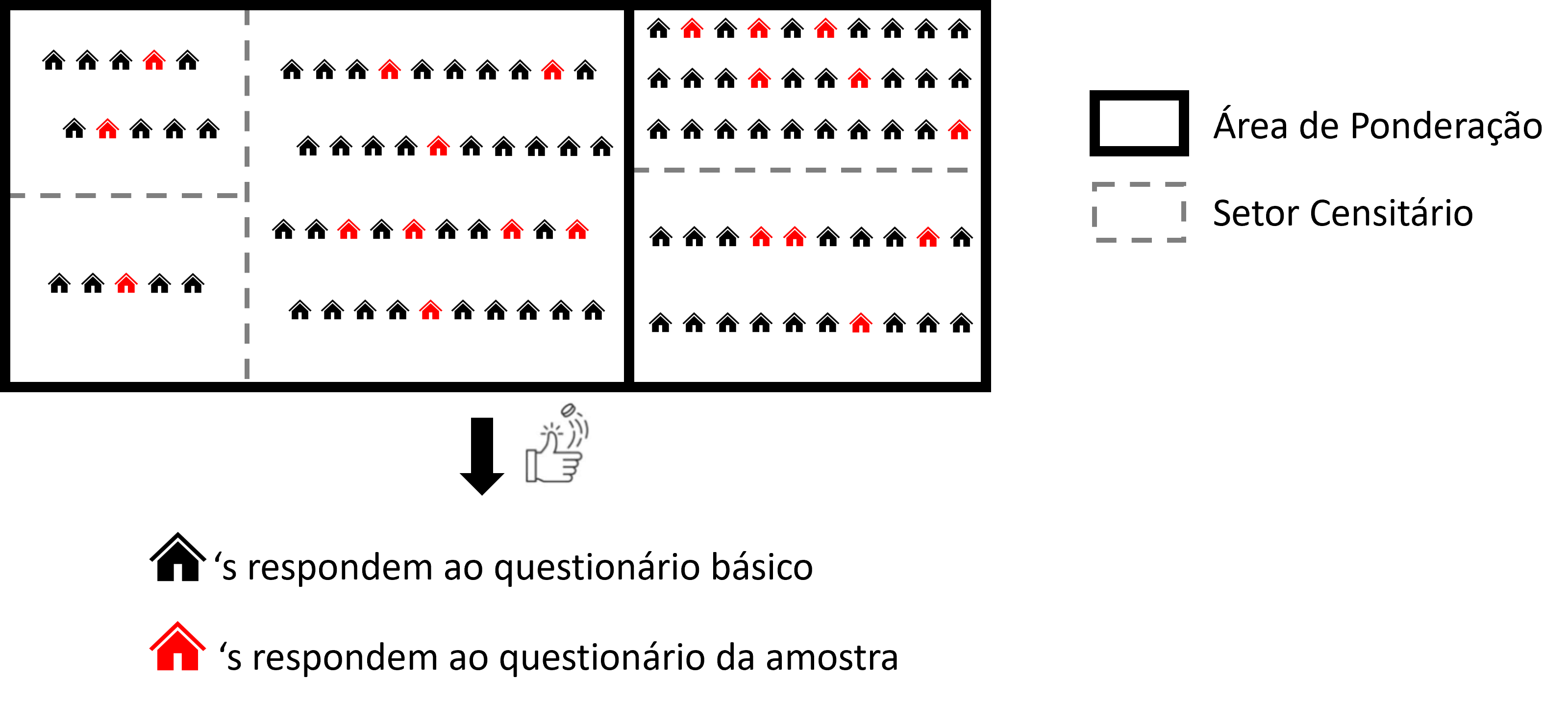 Para o planejamento da coleta dos dados do Questionário da Amostra, o IBGE realiza uma amostragem probabilística no interior de cada setor censitário. Em cada setor, uma fração fixa de domicílios particulares é selecionada por sorteio aleatório. Portanto, o setor censitário é o estrato do plano, com a seleção ocorrendo de forma independente dentro de cada um, onde nenhum domicílio é selecionado com base no que ocorreu nos demais setores.