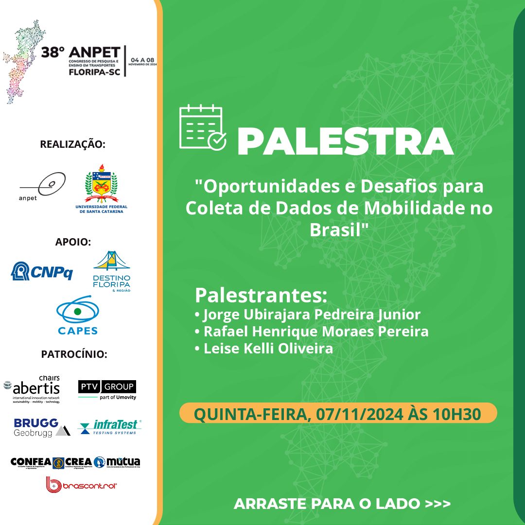 This roundtable presentation (delivered in Portuguese) was given at the 38th ANPET Congress in Santos, November 2024. Drawing on two international benchmark experiences, the talk examined pathways and obstacles for modernizing mobility data collection in Brazil. The first reference was the NextGen NHTS (National Household Travel Survey), a US initiative that integrates continuous passive mobile device tracking with a probabilistic biannual household survey to produce a national origin-destination matrix with imputed sociodemographic attributes. The second was the MPN (Netherlands Mobility Panel), a longitudinal annual web-based mobility survey operating since 2013, notable for multi-year panel retention rates consistently above 80%. Both frameworks were discussed in light of Brazilβs structural challenges: variable data quality, sampling representativeness, LGPD privacy constraints, computational intensity, and the need for interministerial and inter-institutional coordination to enable a comparable national mobility data infrastructure. The slides are available at the link below.
